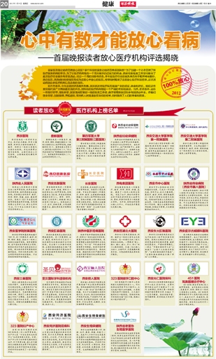 西安市第八医院荣获《西安晚报》经济专刊《西安晚报》读者俱乐部2012年度读者票选放心医疗机构。