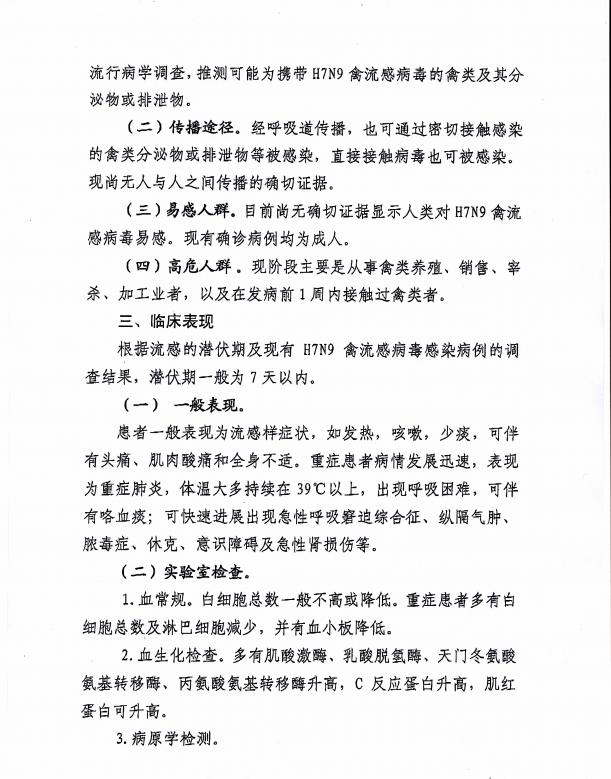 关于印发《感染H7N9禽流感诊疗方案(2013年1版)》的通知