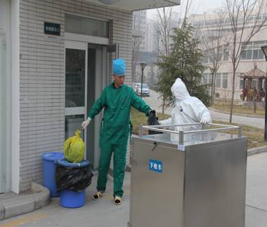 为做好我院埃博拉出血热防治工作,2015年1月6日下午,由医教科牵头,分管院长总指挥,组织了护理部、院感科、检验科、总务科等科室相关人员就患者标本采集、院内标本转运、交接及医疗废物回收处置等环节,对P2+实验室、焚烧炉进行了实战演练。