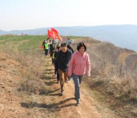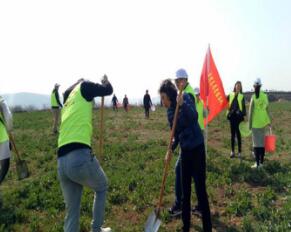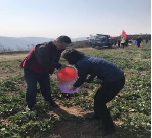 在村民的指引下,志愿者们沿着崎岖的山路到达了活动地点,立即展开了劳动,自发分为两队,一队负责松土挖坑,一队负责提水浇树。虽然早春的气候带着畏寒可是我们的志愿者们干的是热火朝天,汗流满面,期间还有人亲热的向村民请教着怎样浇树养护才能使小树苗茁壮成长......,整个山头呈现出一片繁忙、热闹的景象。团结、友爱、互帮、互助的精神在大家的身上得到充分体现。