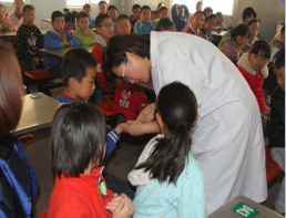 市第八医院一行来到临潼区土桥卫生院、仁宗卫生院,在听取了卫生院工作人员对周边学校情况进行简单的介绍后,先后来到临潼区土桥中心小学、土桥初级中学、仁宗中心小学。市第八医院工作人员的到来受到全校师生的热烈欢迎,在全校学生和老师参与下,感染二科医生王凤兰用通俗易懂的语言分别介绍了流行性感冒、手足口病、流行性腮腺炎、结核病的临床症状,传播途径、易感人群及预防措施,还向师生普及了84消毒液的调配比例和消毒方法。小学生要按时接种疫苗,做到预防为先,如果有症状要尽早前往医院治疗,做到早发现、早诊断、早治疗、早隔离,避免相互传染。她还号召学生们自觉养成良好的生活习惯,多参加体育锻炼,保证充足的睡眠,增强抵抗力,正确地预防疾病的入侵,以健康的体魄投入到学习之中。在会后的互动环节,对学生提出的相关常识问题,王凤兰医生都耐心的一一解答,全体师生认真聆听,会场秩序井然有序。