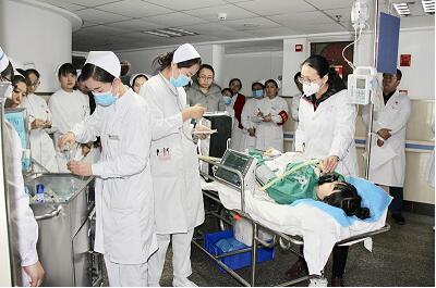 为进一步加强医院护理安全转运应急管理工作,提高护理人员应对突发事件的应急处理能力,以及在转科交接时患者身份识别等管理,使危重患者能够得到快速、妥善处置和转运。11月22日14:00,市第八医院组织在肝病一科、重症医学科开展此项模拟演练。副院长许优、护理部主任任艳叶、医务科副科长黄小正现场指导,全院护士长及各科护理骨干共计30余人观摩了整个演练过程。