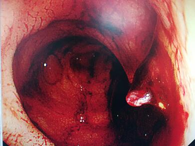 王宏利主任当即决定再为王老做结肠镜检查,查找出血部位。终于,在老人的直肠上发现了“罪魁祸首”——一个直径3、4毫米,绿豆大小的破溃口,经过冲洗、止血、修补等镜下治疗,王老转危为安,被送回了病房。“当了20多年肝病医生,肝硬化并发上消化道出血十分常见,可这种并发直肠出血的病例简直就是凤毛麟角”王宏利主任不无感慨地说。