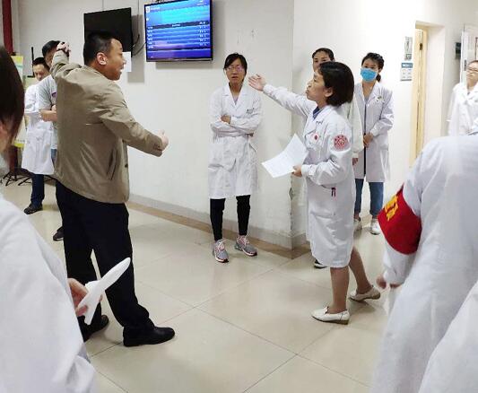 为了提高门诊工作人员安全生产、安全防范意识,增强大家自我保护和应对突发事件的应急处置能力。2019年6月5日,市第八医院门诊部组织门诊各科人员在门诊二楼超声影像科进行了突发火灾的应急预案演练。