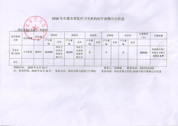 2018年市属市管医疗卫生机构医疗废物公示信息