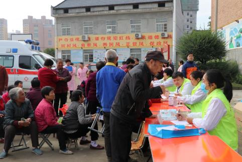 为了不让乡亲们多等,医务人员们早上7点就从医院出发,12名医务人员分成2个组,分别在马召镇分会场马召中心卫生院和富仁镇五合村村委会前,为当地百姓开展义诊和健康教育。天气转凉,医务人员们还带来了治疗感冒等常见疾病的药物,为群众免费发放。