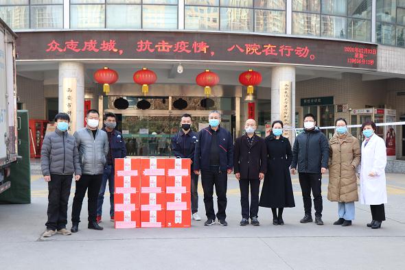 陕西城际交通发展有限公司捐赠苹果200箱。 同心三秦行公益中心及咸阳爱心人士分别捐赠口罩5000个和360个。交大医学院98级校友会捐赠医用面罩和护目镜共计110个。眉县槐芽镇红崖头村一组捐赠猕猴桃72箱。徐宏强捐赠大豆蛋白肽固体饮料20盒。爱心人士孟淑勇女士、高新第二学校学生顾皓元及抗击疫情爱心小组分别捐赠护目镜10个、62个及72个。中华慈善总会蒙牛集团捐赠蒙牛酸牛奶448件。绿地城长安宫98名业主捐赠工业用防护服20个。