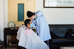2月16日一早,宋杰就带着工具箱,和自己的搭档赵鹏、杜阳来到了市第八医院。一把椅子,一条围裙,几把剪刀,一个简易的理发间就搭起来了。