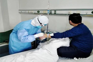 团队中, 医生们也同样辛苦,王宏利主任每天深入病房仔细查看每位患者,在治疗上,医生们对不同的病人身心同治,每位患者的病情都在好转,并且成功治愈了三名确诊患者。面对特殊患者,不仅提供了专业的心理疏导,在生活上我们更是给予更多关注与照顾。