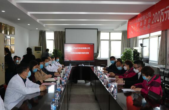 芳菲四月,春和景明。为了向参与抗击新冠肺炎疫情的一线医护人员表示致敬和慰问,4月9日上午,中国第一汽车集团、中国扶贫基金会通过西安市红十字会向西安疫情防控定向捐赠了200万元医务人员关爱金,捐赠仪式在西安市第八医院举行。西安市红十字会党组书记崔锦绣、西安市卫生健康委副主任荣亮、市卫生健康委药政处处长张昌宁、中国一汽出行西安分公司总经理邹俊、市第八医院以及市胸科医院主要领导及部分医务人员代表参加仪式。