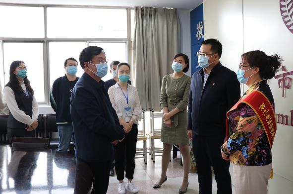 为纪念五四爱国运动101周年,传承五四精神担当时代责任,4月30日上午10:30,团市委副书记徐辉一行四人来到西安市第八医院,为西安市第八医院隔离一区颁发西安青年五四奖章集体。院党委书记李学敏、党办主任宗红梅、团委书记王雯及隔离一区主任和护士长及护士代表共同参加。