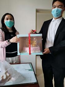 当他们提着蛋糕出现在护士站时,护士长和护士姐妹们脸上洋溢着惊喜的表情,龙祥公司医院职工食堂负责人表达了他们的祝福:今天是5.12国际护士节,祝你们节日快乐! 对疫情期间白衣天使的逆行表示由衷的感谢并将蛋糕送到护士长手中。为了记录这一温暖的时刻,大家拿出了手机拍照留影,随后又匆匆走进了病房。