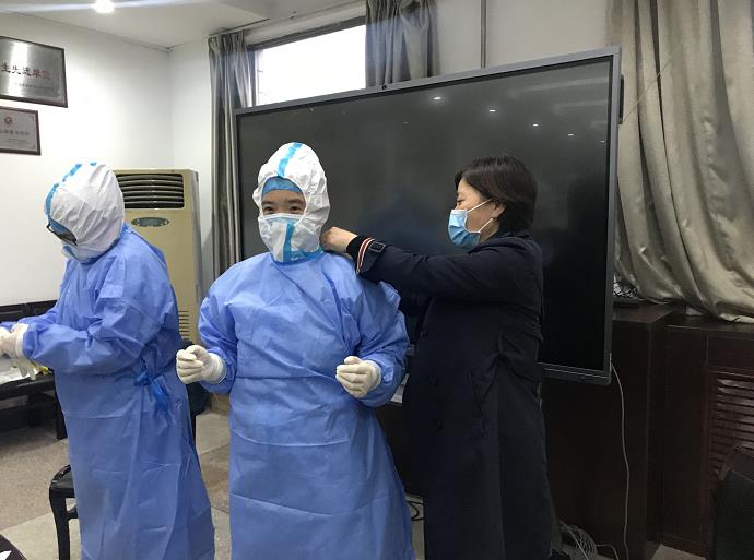 随后,医务科黄小正科长强调严格落实病区查房制度,要求对隔离病区患者成立一对一的新冠患者关爱群,保证患者在住院期间得到满意的治疗。护理部任艳叶主任强调了隔离病区各种安全制度的交接工作及隔离生活区的管理规定。控感科权晓娟主任对所有参加培训的人员进行了院感知识的培训,现场演示了防护服的穿脱,并组织考核。为提高新冠核酸采样标本的阳性率,由检验科钱宏波主任专门讲解了核酸采样的方法,现场进行了演示,并两两进行了互采,考核通过者方可进行核酸采样。