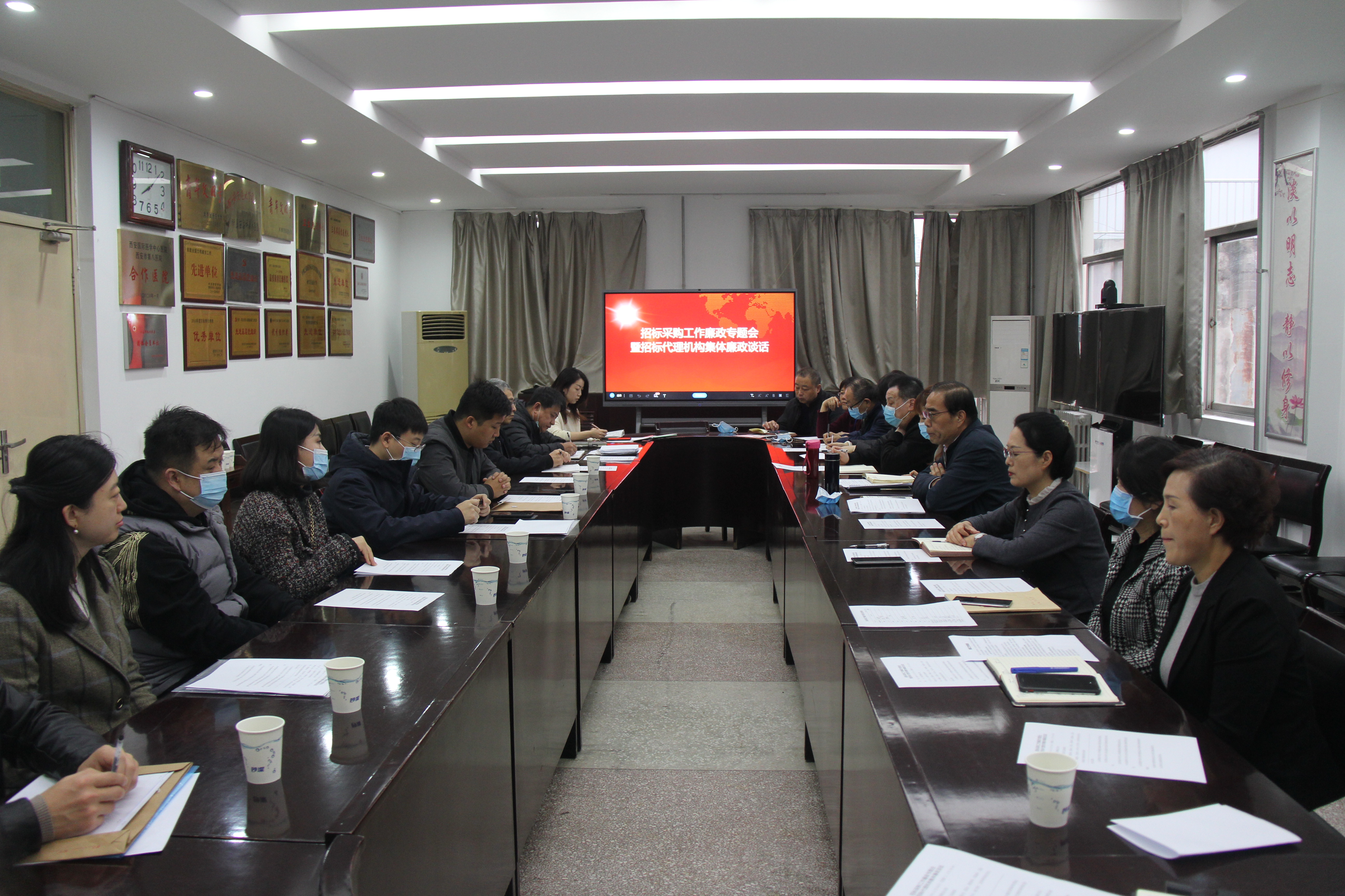 为进一步强化医院纪委对招投标工作监督管理,切实做好招投标领域腐败问题预防工作,11月18日上午,西安市第八医院纪委召开招标采购工作廉政专题会暨招标代理机构集体廉政谈话。会议由医院纪委书记高海琪主持,院办公室、招标办、监察室等12个经济活动相关职能科室负责人和7家招标代理机构代表参加了会议。