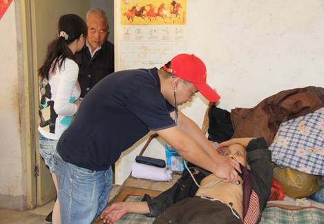 局党委副书记、纪委书记张翠珍带领局团委书记陈锋到达活动现场,慰问辛勤劳动的志愿者们,同大家亲切的交谈起来。在张书记的带领下,大家走进了农家,送去了医务人员的关怀。我院感染一科主任李飞宇,在得知80多岁的李大爷和老伴独自生活时,详细的询问了二老的身体状况,为二老查体、量血压。当发现李大爷的老伴血压偏高时,反复叮嘱老人家多休息,定期检查、清淡饮食等注意事项,并将一些疾病症状告知了随行的村干部,希望他们好好关照老人。