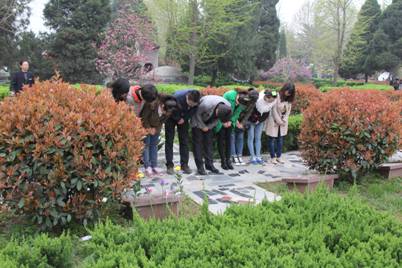 绿荫成翠,庄严的烈士陵园里一片肃穆,团员青年们怀着沉痛而崇敬的心情,追忆为了人民解放事业奉献出自己热血和生命的革命先烈。在英雄墓碑前,团员青年们默默哀悼,敬献了象征着追忆和高洁的鲜花花圈,并在烈士墓前庄严宣誓,坚定信念、勤勉自励、厚德博学,为人民的卫生事业奉献终身,用青春的激情和对祖国的忠诚、对医学事业的热爱告慰英魂。