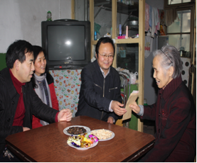 随后,丁副局长在院领导班子的陪同下,来到我院家属院,看望并慰问了离休老党员穆九林。在和老人的交谈中,他详细询问了老人的生活情况和身体情况,丁副局长代表市卫生局党委对老人为西安市卫生事业做出了突出的贡献表示感谢。并将局党委慰问金交到了老人手里,老人激动的拉着丁副局长的手,感谢市卫生局的领导百忙之中还惦记着他们,感谢局党委对他们这些老党员的关心。