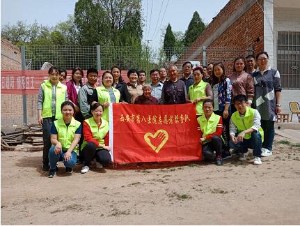 4月10日一大早,市计生协秘书长涂洪柱、西安市第八医院领导班子成员带领党团员青年志愿者20人,驱车来到临潼区庄王村帮扶对象王悦明家落实帮扶计划,此次前往的目的主要是帮助老人家铺设下水管道、平整鸡舍以及清理庭院环境卫生,同时进行健康生活指导。