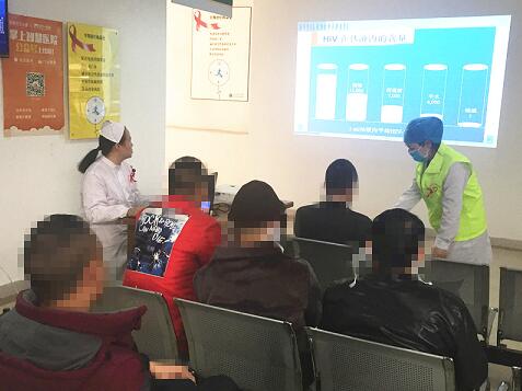 在艾滋病日宣传系列活动中,市第八医院志愿者们还在医院爱心家园为就医患者进行知识讲座和志愿服务,向患者宣传艾滋病相关知识,详细讲解国家对艾滋病患者诊疗的优惠政策,同时解答患者提出的各种问题,得到大家一致好评。