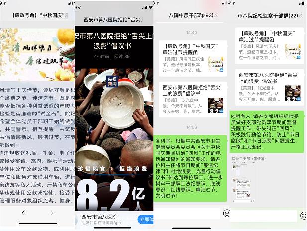 中秋、国庆节将至,为深入贯彻落实中央八项规定精神,严防“四风”问题反弹回潮,坚决杜绝“节日腐败”,西安市第八医院纪委采取多项措施,确保节日期间风清气正。