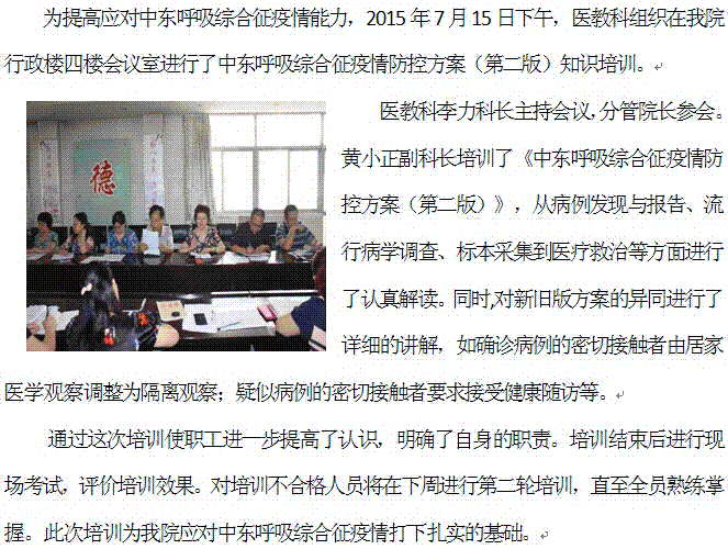 中东呼吸综合征疫情防控方案培训(第二版)